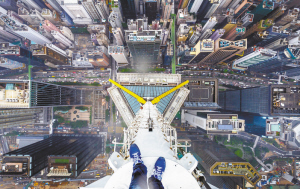 2016年5月11日,中国香港,来自德国的19岁小伙Andrej Ciesielski徒手攀登了香港一栋摩天大楼,并通过固定在头部的摄像头拍下来俯瞰视角下云雾缭绕的城市风光,令人担心之余也惊叹不已。Andrej的徒手攀爬行为非常冒险,他的足迹也已经遍布世界各地。