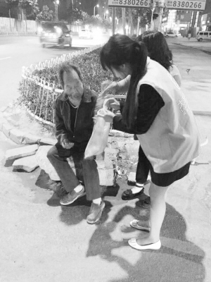 “当时老人好像说了一声‘饿’,我的同事就赶紧给老人拿来了水、香蕉等食物。”庞艳侠说,“老人是沈丘人,看上去有60多岁。老人说他在附近一工地干体力活,劳累一天加上晚上没吃饭,所以才晕倒。有市民愿意出钱让老人去医院检查,但老人婉拒了大家的好意。”