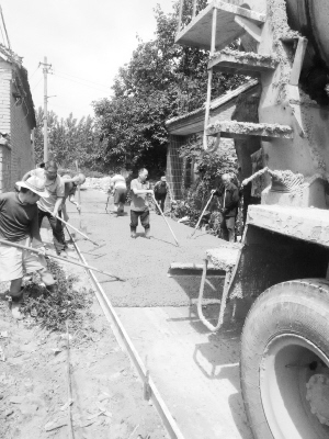 当日上午,周口晚报记者还没有走进西华县东王营乡李方口行政村,就听到机器的轰鸣声。走进村,周口晚报记者循声望去,看到几位施工人员正在一条街道上浇筑水泥(图一)。街道两侧村民不时有人出来看看,询问一下工程的进度。一位村民告诉周口晚报记者,以前这里都是土路,雨天出行非常不便。这条路修成水泥路后,大家出门就方便了,感觉也舒服了,驻村工作队为大家办了一件大好事。