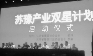 大会吸引了河南、江苏、广东、浙江、山东、上海等省份的上千名客商参加。会上,领导和来宾分别致辞后,苏豫产业双星计划启动仪式正式举行。江苏省服装行业协会会长郁兵与河南省服装行业协会会长李刚走上主席台,在来宾见证下庄重举行了签约仪式,这标志着苏豫产业双星计划在商水正式启动。