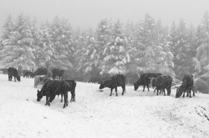 5月21日,在新疆哈密,牛群在雪中觅食。