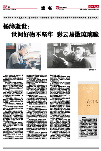 杨绛逝世:世间好物不坚牢 彩云易散琉璃脆