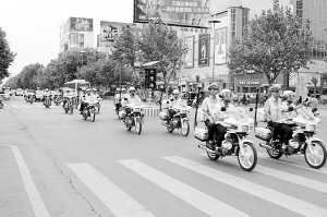 5月26日,周口中心城区出现大量“摩托警”。由市交警支队统一组织,从市区直属的5个交警大队抽调的30名交警将驾驶摩托车在中心城区主要道路来回巡逻,查处非机动车交通违法行为。