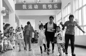 5月27日,为庆祝六一儿童节,周口市残疾人联合会举办了一场别开生面的亲子互动运动会,参加运动会的是60多名听障儿童和他们的父母。晚报记者 张擘 摄