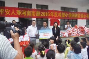 5月31日,平安人寿周口中支一行20多人在平安人寿河南省分公司副总经理王化冰、周口中支总经理夏国防以及周口市保险行业协会秘书长王超带领下,来到淮阳县安岭镇程楼村参加2016年度平安希望小学回访暨爱心书屋捐赠仪式,并向这里的小学生送去了六一儿童节的祝福。