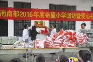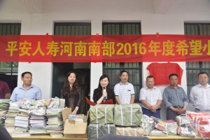 在这次资助活动中,平安人寿周口中支向程楼村希望小学捐赠了1000本图书,150套校服、150套文具以及其他学生用品。