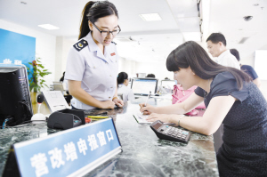 当日是营改增试点全面推开后首个纳税申报期,这标志着全面营改增试点进入第二个阶段。据福州市国税局介绍,本月营改增申报期延长12天至6月27日,纳税人宜尽可能上网办理申报、申领发票。新华社记者 宋为伟 摄
