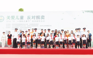 6月1日,中国反拐义务宣传员、志愿者、出席活动的嘉宾和小朋友合影。