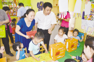 5月31日,市教育局相关负责人先后来到周口市实验幼儿园、周口市文昌幼儿园和周口市莲花幼儿园,给孩子们送去节日礼物和祝福。晚报记者 宋风 摄 通讯员 谢文贞
