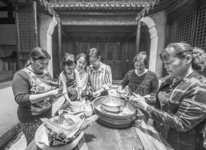 6月5日,村民们在范家老宅内包粽子。