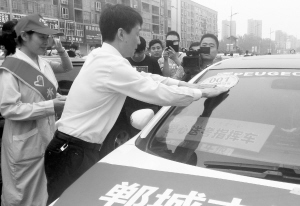 6月5日,由项城雷锋车队组织的“爱心助考”活动正式启动(如图)。高考期间,考生可凭准考证向带有“爱心助考服务车”标志的车辆招手,就可免费乘车到考场。晚报记者 金月全 摄