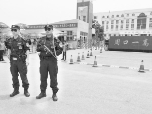 6月7日,一年一度的高考拉开大幕。在市纺织路小学、周口一高等高考考点门口,周口特警荷枪实弹为考生保驾护航,确保高考顺利进行。