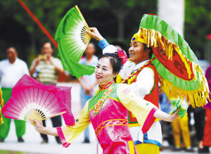 当日是我国第11个文化遗产日,河北石家庄市举办非遗精粹展演活动,来自石家庄各地的非物质文化遗产展示队为观众献上井陉拉花、吹歌艺术等精彩演出。