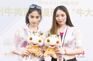 6月11日,礼仪人员展示“牛大”动漫形象。