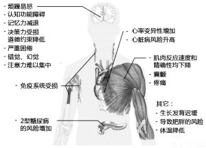 18.忍痛力降低:已经有研究显示,若晚上睡眠不足,人体对于疼痛的敏感度会提高,对于疼痛的忍受力则会降低。