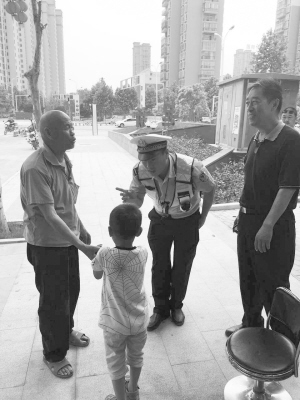 本报讯 6月12日下午,在周口中心城区庆丰路与周口大道交叉路口执勤的交警发现一个与家人走散的小男孩,帮其联系到家人。