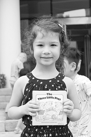 贝儿的母亲是中国人,父亲是澳大利亚人。贝儿捐的书是英文版的《三只小猪》。“妈妈给我讲过里面的故事,听起来非常有意思。我已经听了很多遍。我要把这本书捐给有需要的小朋友,和他们一起分享快乐。”贝儿笑着说。
