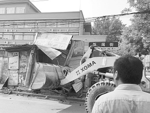 16时许,铲车进场,周围拉起了警戒线。伴随着几声闷响,灰土随风四处飞舞,这处废弃书报亭瞬间被压缩成了一个大铁块,随后被车辆运走。另外,城管队员使用铁钳、撬杠等工具,将高空悬挂的非法广告牌、雨搭等一一进行了拆除。