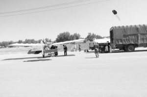 何立新介绍,本次飞防有两家公司中标,分别是北京国翔联合农林生物防治技术中心和登封市蓝翔科技服务有限公司,投入飞机5架,计划飞行120架次。根据作业面积和配合飞机起降的场地情况,本次飞防选择了“小蜜蜂”轻型滑翔机,“所用飞机属于固定翼飞机,对起降场地要求不严格,不需要固定的机场,有效作业时间长,灵活性更强,适应地形比较复杂的地区,载药量达到150公斤以上”。