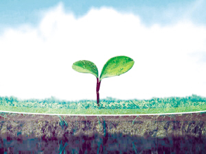 几天后,深埋在地下的种子破土而出,小小的嫩芽争先恐后崭露头角,给田野增添一抹绿色。