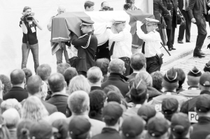 6月17日,在法国巴黎,人们参加遭杀害的警官及其妻子的葬礼。法国总统奥朗德、总理瓦尔斯和内政部长卡泽纳夫参加了仪式。