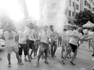 本报讯 6月19日,600多名市民从周口市佳利社区出发,参加“彩色跑”活动(如图)。