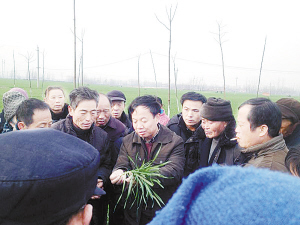 “具体如何用心种好全县140多万亩农田,如何服务农民增收,我们有一支由80多名队员组成的强有力的技术团队。”张家全指着郸城县农业局办公室主任袁文先向记者介绍说,“我们这个办公室主任可不简单,他有30多年的农业工作经验,是相当于大学教授级别的农技推广研究员。”