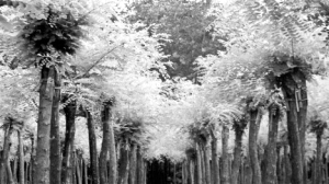 幽深而恬静的槐树林,几日间竟从我的视野蒸发了,躺在地上的是一根根截得长短一致的木材。不久,轰隆隆的机器声摧毁了此处深远的静谧。又不久后,大楼就初见雏形。站于此处,我常对着那些生砖硬瓦发呆。