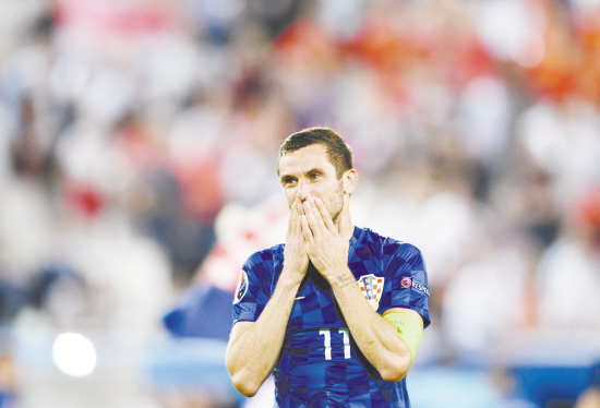 克罗地亚队球员斯尔纳在比赛后向球迷致意 欧锦赛 克罗地亚逆袭 西班牙“斗牛士” 据新华社电 法国欧洲足球锦标赛当地时间6月21日上演一场质量很高的技术流对话,结果克罗地亚队在先失一球的情况下强势逆转以2∶1击败卫冕冠军西班牙队爆出冷门,前锋卡利尼奇的“蝎子摆尾”世界波和佩里西奇的小角度抽射让“棋盘军团”力压“斗牛士”取得D组头名,西班牙队也被