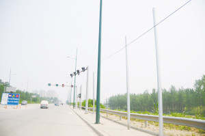 6月22日,周口中心城区七一东路与周口大道交叉口,6根4米高的钢杆竖立在路旁。附近居民告诉周口晚报记者,6根钢杆是支撑3块广告牌的,由于广告牌为非法设置,已被有关部门依法拆除,他们猜测广告牌有随时“回来”的可能。晚报记者 朱海龙 摄