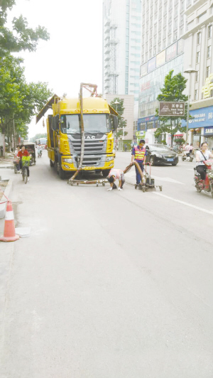 为了创建省级文明城市,市交警支队请来一辆路面标线清洗车,来到周口中心城区七一路上施工作业。该设备通过高压水流的旋转式冲刷,高效快速清除路面原有的标线,且不伤害路面,施工过程中对作业路段交通无影响。