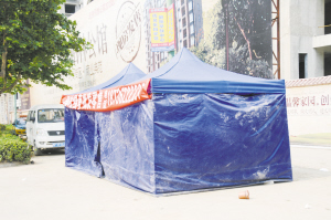 6月22日,周口中心城区建安路与安居路交叉口,花卉商贩的两个帐篷占据路边。据了解,此前该处有一花贩占道经营多年,前几日才被整治取缔,没想到好景不长,占道经营现象又重演。晚报记者 朱海龙 摄