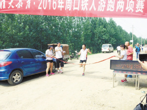 记者在川汇区和商水县交界的刘庄比赛现场看到,选手对首次参加铁人项目的比赛十分激动,在赛前积极讨论比赛中应注意的一些细节。“我擅长游泳,但是后面的5000米,心里没底,连续进行两个项目比赛,很紧张。”一位参赛的小伙子说。比赛开始后,正如参赛选手赛前担心的一样,很多选手出现“偏科”现象,游泳占优的选手虽然在前半段领先,但是到5000米跑的时候又被擅长跑步的选手一点点超过,比赛充满悬念。