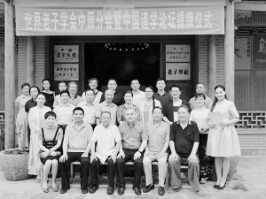 6月30日上午,世界老子学会中原分会在位于周口市区关帝上城的老子学社揭牌成立。图为部分成员合影。