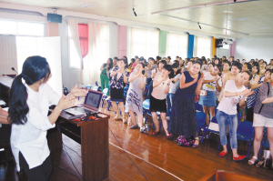 7月1日,周口市实验幼儿园特邀请华亚教育的讲师,为该园进行了国学经典教育培训,给全体老师在国学吟诵上带来了新的空气和新的能量。 记者 王珂 摄