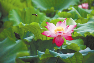 接天莲叶无穷碧,映日荷花别样红。时下正值赏荷时节,市经济开发区人民广场的荷花池里,荷花竞相开放,格外娇艳迷人,吸引了众多市民前来观赏。