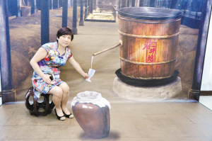 3D电影、3D打印……3D概念越来越火,如今,这股3D风潮也吹到我市广告宣传业。水井坊近日在周口举行新品发布会时也采用这一技术制作了高科技画面,其艳丽、逼真的效果受到商家欢迎。图为一客户体验“端杯接酒”。