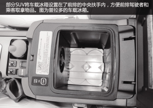 车载冰箱基本是豪华车的标准配置,大多数都被安置在后排中央扶手的后方,可以方便后排乘客随时从中拿取物品。但车载冰箱也不只是豪华车的专属,在一些SUV上也有所配备,例如普拉多和帕杰罗等车型,而它们的车载冰箱位置大多被设置在前排中央扶手箱内。