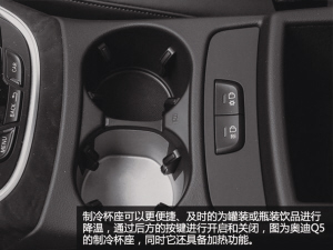 相对于车载冰箱和手套箱通空调可以对冷饮进行保温,车载杯座提供更好地及时性,你只需要将水杯或者罐装、瓶装饮料直接放入杯座中,按下开启制冷按键,就能在短时间内快速得喝到略带凉意的饮品。这项配置在奥迪Q5和A6L,以及奔驰GL和ML的部分车型上有所配备。
