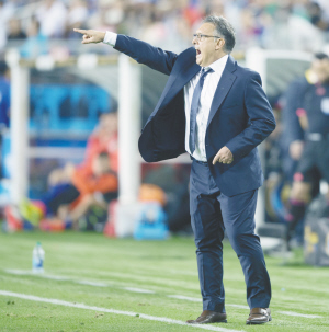 当地时间7月5日,在距里约奥运会还有1个月之际,刚刚从美洲杯决赛铩羽归来的阿根廷队主教练马蒂诺宣布辞职。图为6月6日,在2016年百年美洲杯足球赛D组首轮阿根廷队对阵智利队的比赛中,阿根廷队主教练马蒂诺在场边指挥。