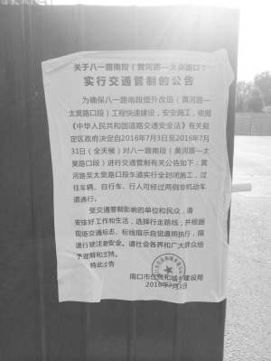 当日下午,周口晚报记者在八一大道南段看到,原火车站铁道口至太昊路路段的双向机动车道已全线封闭,“过往车辆请绕行”的交通警示牌也已竖立在路口,几辆施工车辆正在现场紧张忙碌地备料、开挖路面。