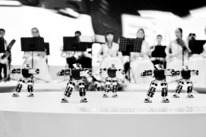 7月7日,参加第二届国际仿人机器人奥林匹克大赛的机器人在表演京剧。