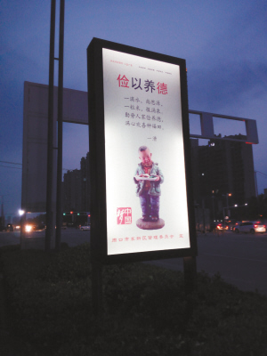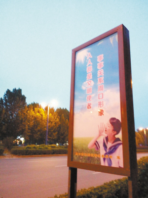 7月9日晚,在周口中心城区文昌大道,一块块写有“人人都是文明使者”“善曲高奏”“俭以养德”等内容的公益宣传牌整齐地分布在道路两侧,给城市的夜晚增添了一抹亮色。晚报记者 张洪涛 摄