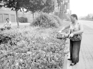 7月12日上午,周口晚报记者在中心城区文昌大道上看到,一名园林工人忙着修剪道路两边的绿化带,虽然天气闷热,却阻止不了她忙碌的脚步。对道路两边的绿化带进行修剪,不仅美化了市容市貌,也给创建省级文明城市添彩增色。