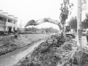 被农业部列为“全国美丽乡村建设试点村”的沈丘县冯营乡李寨村又有大动作——治理护寨河。护寨河的治理内容包括河坡硬化,两岸绿化和亮化,建设景观小品等,还将引入沙颍河河水,让死水活起来。图为7月14日的施工现场。