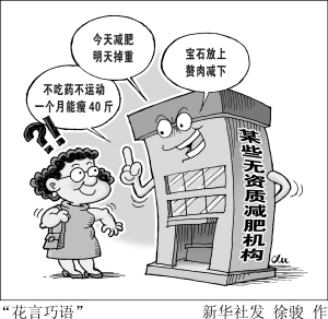 “今天减肥,明天掉重”“宝石放上,赘肉减下”“不吃药不运动,一个月能瘦40斤”……炎炎盛夏,又到了“减肥”季节,一些减肥机构对爱美人士作出如是承诺。记者调查发现,这个“看上去很美”的减肥市场,实则乱象丛生,消费者一不留神就会踏入“健康陷阱”。新华社发