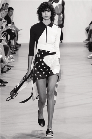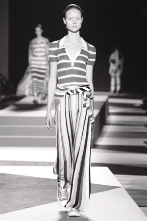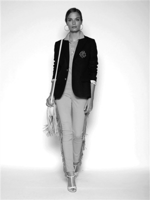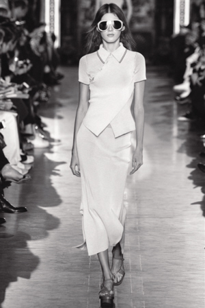 为了讨好部分女性对“女性化”的念想,设计师们又纷纷大刀阔斧对Polo衫的细节进行改革,比如将领口开得更低。传统的Polo衫只有两颗纽扣,现在则增加到4颗左右,纽扣之间的间距也在拉大,以满足“一秒钟变性感”的需求,为Polo衫赋予了更多性格。有趣的是,Stella McCartney甚至将中国传统服饰中的斜襟元素用在了Polo衫上,修身的剪裁加上一条同面料中裙,使之瞬间喷发出高级套装的气场。