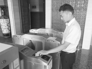 近日,周口市博物馆为了进一步加强文物安全,规范参观秩序,优化参观环境,启用了免费检票系统。市民到博物馆参观时,可使用身份证、学生证、驾驶证等有效证件免费参观。图为工作人员示范使用免费检票系统。晚报记者 王晨 摄