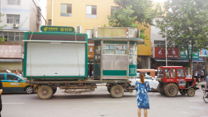 周口中心城区人民东路市中心医院门前有两个书报亭,长期“霸占”人行道,不仅影响市容市貌,而且影响行人通行。7月18日下午,有关部门对这两个书报亭进行了拆除。附近居民表示,书报亭拆除后,人行道恢复通畅,行人通行会方便许多。晚报记者 牛思光 摄