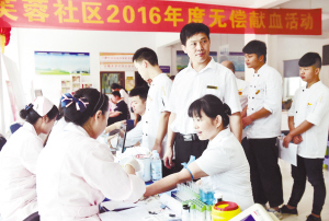 7月20日,志愿者在芙蓉社区接受献血前的血液检测。